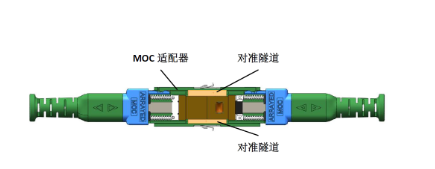 1) MOC的适配器带有粗对准隧道,二级对准机制大大提升连接器的光学性能。